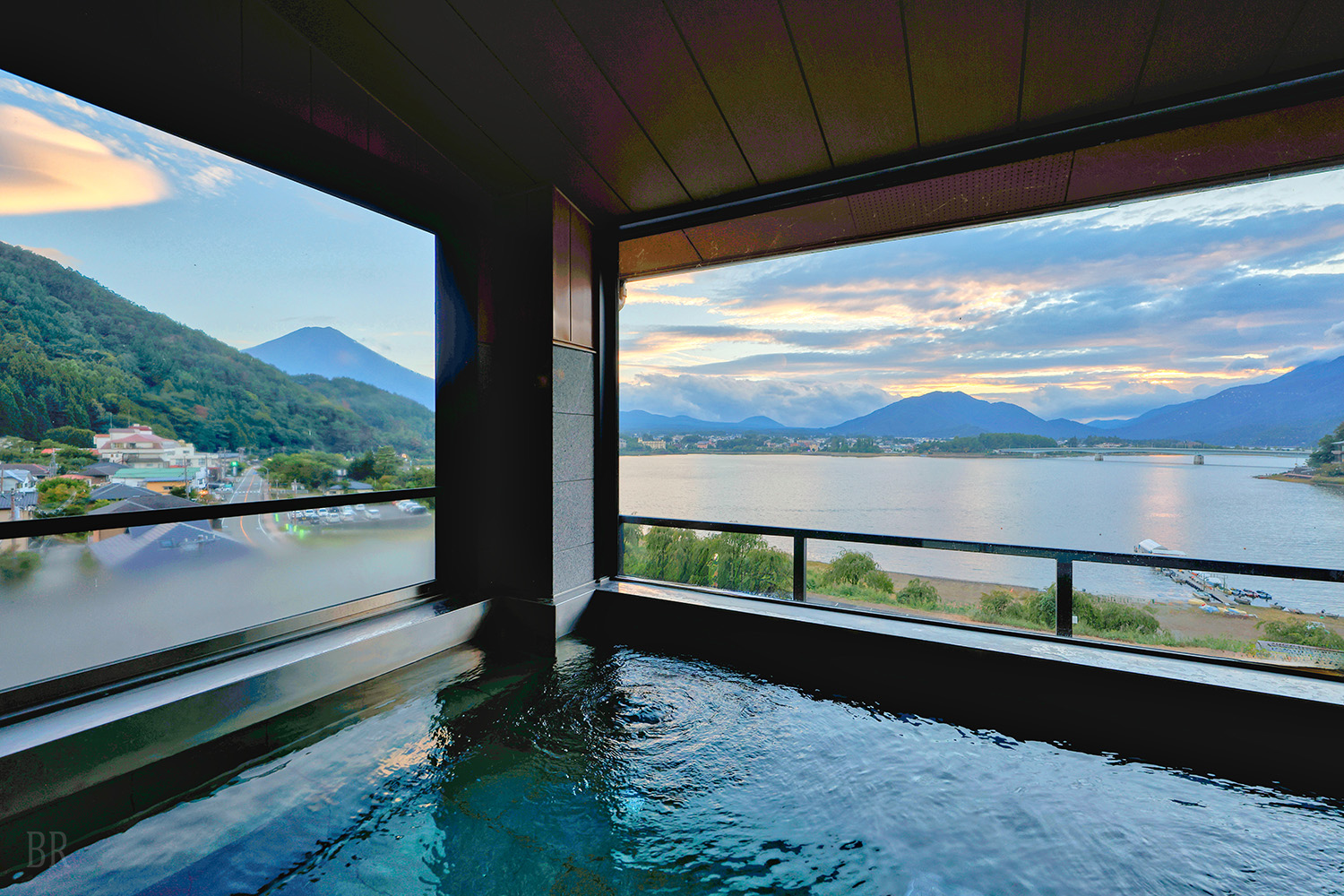 Enjoy a relaxing hot spring bath with a direct view of Mount Fuji and Lake Kawaguchi.